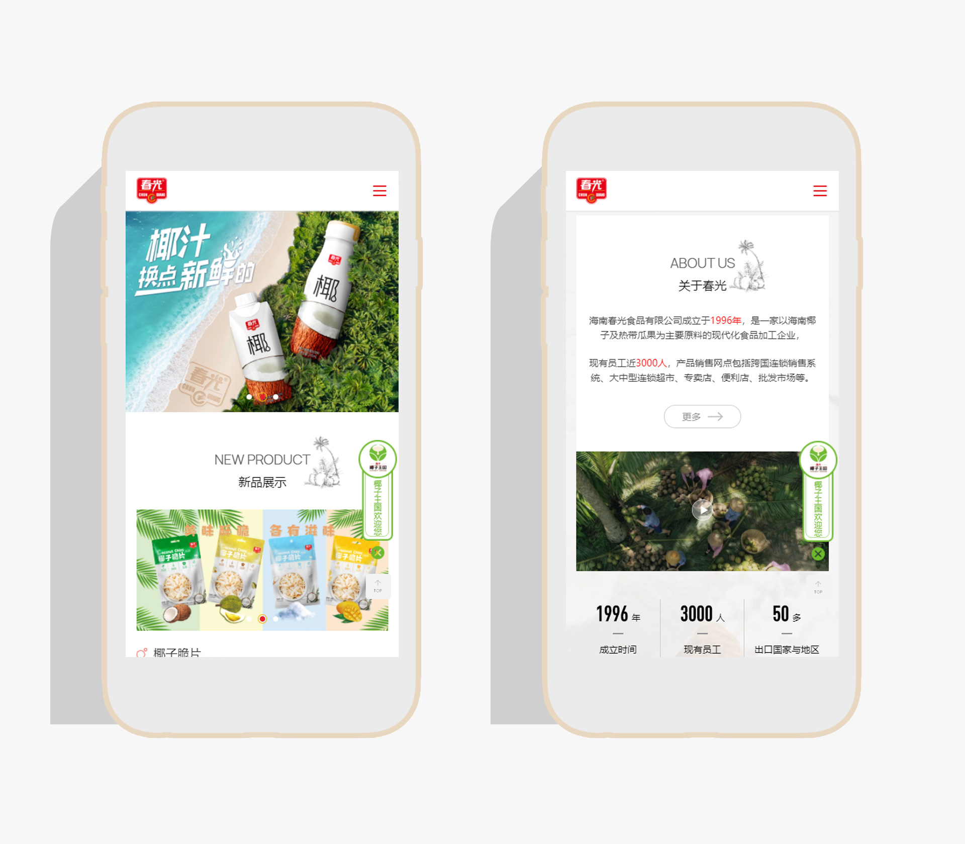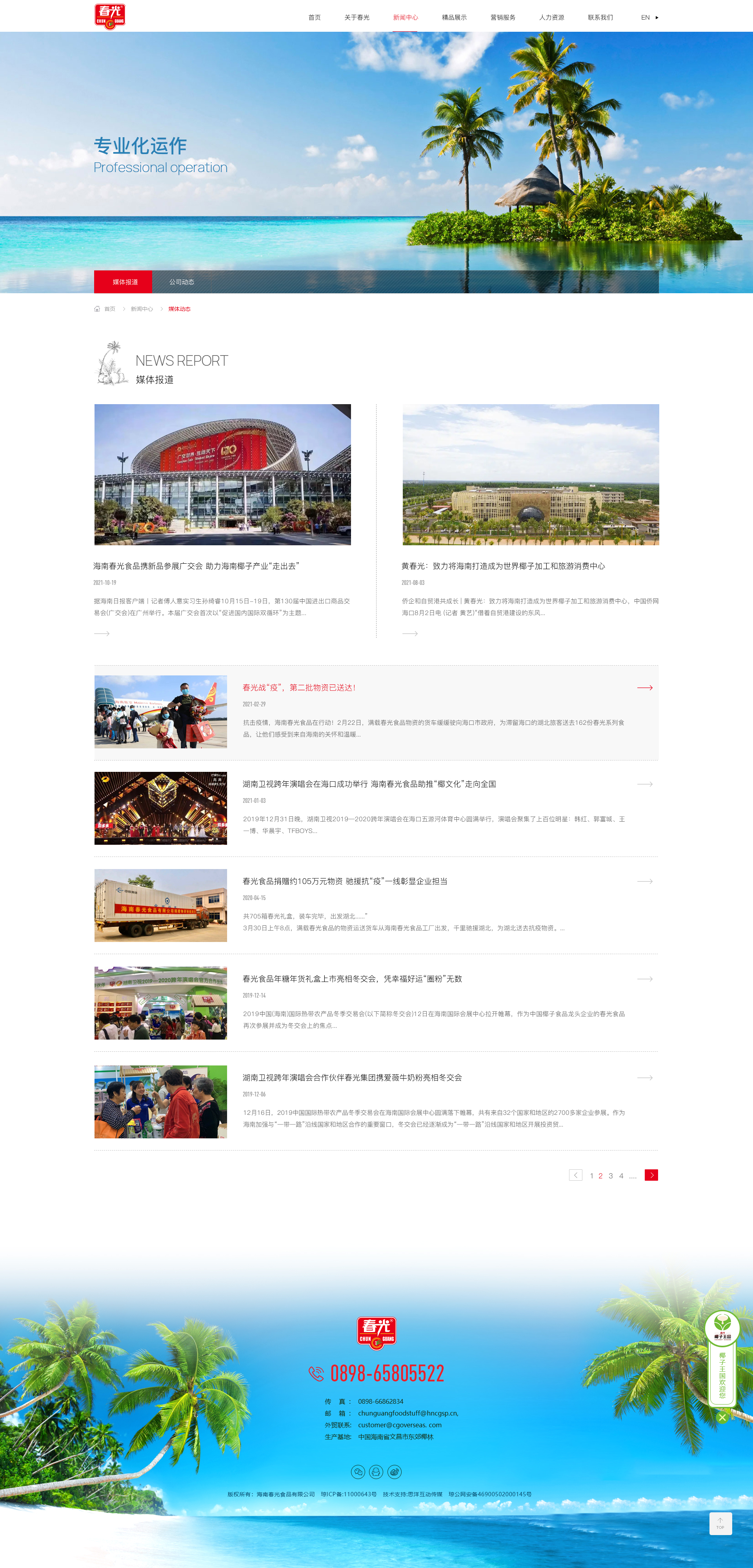 海南春光食品有限公司成立于1996年,是一家以海南椰子及熱帶瓜果為主要原料的現代化食品加工企業,現有員工近3000人,產品銷售網點包括跨國連鎖銷售系統、大中型連鎖超市、專賣店、便利店、批發市場等。部分產品出口美國、新加坡、歐洲、中東、香港、臺灣等50多個國家和地區,是全國農產品加工業示范企業、農業產業化國家重點龍頭企業,產品商標經國家商標局認定為“中國馳名商標”。